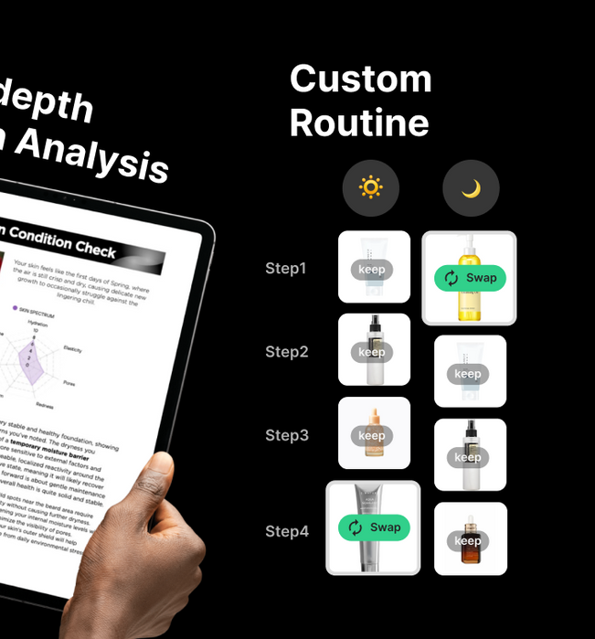 We cross-analyze your skin and current products to see what’s helping and what should pause for now.We also assess the balance of your routine.